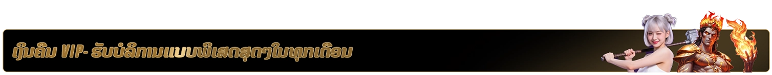 ໂບນັດນີ້ແມ່ນຂໍ້ສະເໜີພິເສດສຳລັບສະມາຊິກ VIP ລະດັບສູງ: ເງິນຄືນ 15% ຕໍ່ເດືອນ ສຳລັບການສູນເສຍທີ່ສຳຄັນຂອງເຂົາເຈົ້າແຕ່ລະເດືອນ. ການລວມກັນຂອງໂບນັດເງິນຄືນ ແລະ ເງິນຄືນ VIP ຈະສົ່ງຄືນເງິນສ່ວນຫນຶ່ງໃຫ້ກັບຜູ້ຫຼິ້ນ ແລະ ຮັບປະກັນຄວາມພໍໃຈຂອງຜູ້ຫຼິ້ນ.